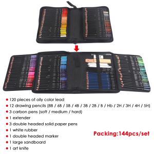 Professional drawing set with 12 oily colored pencils, carbon pens, extender, eraser, markers, sandpaper board and art knife.