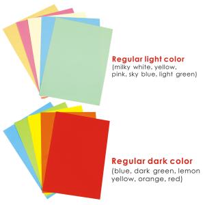 A4, 80gsm, 100 sheets, 10 color: milky white, yellow, pink, light green, sky blue, light blue, red, green, yellow, orange