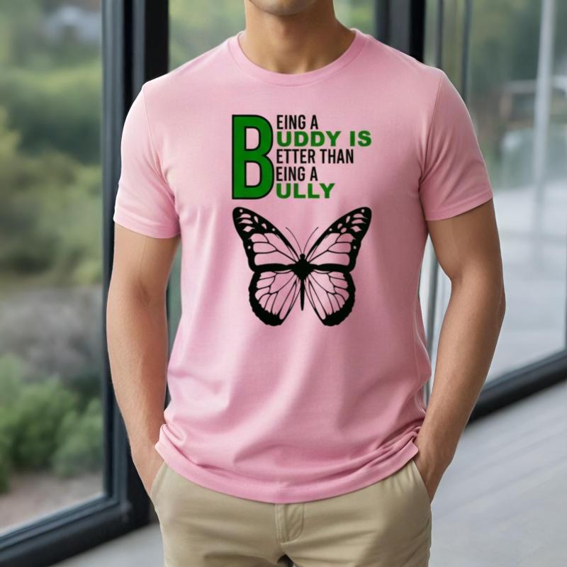 Make a positive statement with our Anti-Bullying T-Shirt, designed to promote empathy, kindness, and unity. Crafted in a soft pink tone, this T-shirt showcases an inspiring message—“Being a Buddy is Better Than Being a Bully”—boldly highlighted for maximum impact. The elegant butterfly graphic symbolizes transformation, hope, and compassion, reinforcing the message of positive change.