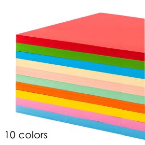 A4, 80gsm, 100 sheets, 10 color: milky white, yellow, pink, light green, sky blue, light blue, red, green, yellow, orange